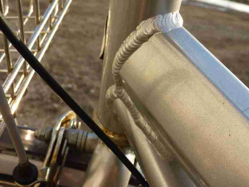 サスペンションの位置関係でトップチューブは太い六角形で、溶接も盛り上がっている。