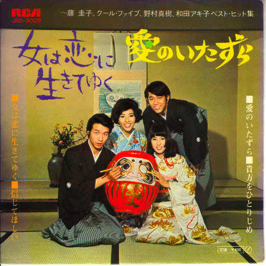 ジャケット上部の「藤圭子、クール・ファイブ、野村真樹、和田アキ子ベスト・ヒット集」という名前の並び順は当時のレコード会社RCAにおける4人のランク付け。