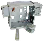 XP機の構成は、Socket 754 に Athlon 64 、 256+512+1GBのDDR(1)メモリ 、 IDE のハードディスク 160GB 、AGPスロットに GeForce FX 5600 。 HDDと光学ドライブ以外は総取っ替えになるから、さすがに無理だろう。